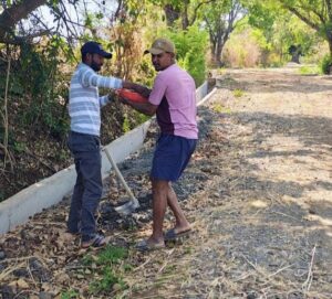 सरकारकडून नवीन रस्ता मंजूर, इतका निधी मंजूर असल्याच्या घोषणेने आमदार विठ्ठल हलगेकर यांनी रस्त्याची पूजा केली, त्यानंतर काहीं दिवस काम चाललेही. रस्ता सपाटीकरण करून दोन्हीं बाजूच्या गटारींचे कामही करण्यात आले. मात्र, त्यानंतर तब्बल तीन महिने हे काम बंदच पडले असून, कॉन्ट्रॅक्टर अर्धवट काम सोडून पळून गेल्याची जोरदार चर्चा नागरिकात रंगली आहे. परिणामी सपाट केलेल्या रस्त्यावर खडी, लहान खडे आणि खड्डे पडल्याने अपघाताचे प्रकार सुरू असून, गेल्या चार दिवसापूर्वी एक जण पडून हाताला दुखापत झाली आहे. त्यामुळे गावातील युवकांवर ते खड्डे भरण्याची वेळ आली. आज युवकांनी सदर खड्डे भरले, त्यामुळे सरकार काय करते? असा संतप्त सवाल नागरिकांतून उपस्थित केला जात आहे.