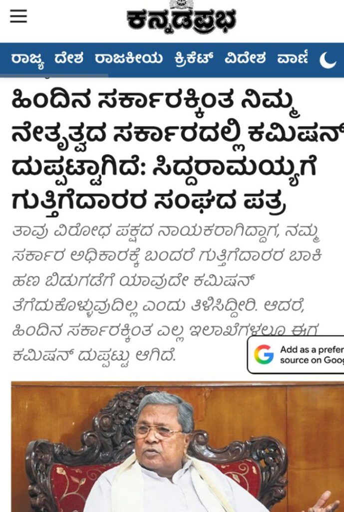 काय म्हंटले आहे, त्या पत्रात, सिद्धरामय्याजी तुम्हीं विरोधी पक्षनेते होता तेंव्हा आम्हाला सत्तेत आल्यानंतर आमची प्रलंबित बिले तात्काळ मिळतील शिवाय,आमच्या सरकारच्या काळात कोणतेही कमिशन घेतले जाणार नाही किंवा कोणाला त्रास दिला जाणार नाही असे सांगितला होता. मात्र, त्यानुसार काहीही घडले नाही. त्यामुळे तुम्हाला आता पत्राद्वारे कळविताना दुःख होत आहे. मागील सरकारच्या तुलनेत तुमच्या सरकारमध्ये अधिकच कमीशन घेतले जात असून, गेल्या तीन महिन्यांत केवळ 15 ते 20 टक्केच रक्कम एकूण बिलातील मंजूर केली जात आहे. बिले मंजूर करतांना प्रतिष्ठेचे पालन केले जात नाही. निर्मिती केंद्र आणि कर्नाटक ग्रामीण पायाभूत विकास सेवा महामंडळ लिमिटेड ( केएआर आयडीएल) सारख्या संस्थांवर निवडून आलेल्या प्रतिनिधी आणि त्यांच्या अनुयायांना (कार्यकर्त्यांना) प्रकल्प दिले जातात, ते अनुयायी वरिष्ठ कंत्राटदारांना कमिशनच्या बदल्यात सदर प्रकल्पातील कामे देतात. 40 टक्के कमिशनमुळे मागचे भाजप सरकार अडचणीत आले होते, त्यावेळीं अगदी चांगल्या योजनेने काँग्रेसने भाजपला कोंडीत पकडले होते. आणि त्याचा परिणाम 2023 च्या निवडणुकीत दिसून आला, त्यावेळी भाजपला पराभव पत्करावा लागला होता. कंत्राटदार संघटना 32 हजार कोटींच्या थकित बिलासाठी सरकारकडे पाठपुरावा करत आहे, मात्र, कोणताच प्रतिसाद मिळत नसून, उलट अधिकाऱ्यांवर करवाई करण्याची घोषणा तेवढीच दिली जात आहे. आतापर्यंत तुम्हीं आमच्या समस्या सोडवाल म्हणून आम्हीं धीर धरून होतों! असे या पत्रात नमूद करण्यात आले असून, त्यावर कंत्राटदार संघटनेचे अध्यक्ष आर. मंजुनाथ, सरचिटणीस जी. एम. रविंद्र यांच्या स्वाक्षऱ्या आहेत. त्यामुळे भाजप आणि काँग्रेसमध्ये कोणता फरक राहिला? तीच अवस्था पुन्हा पुन्हा अशाच प्रतिक्रिया उमटत आहेत..