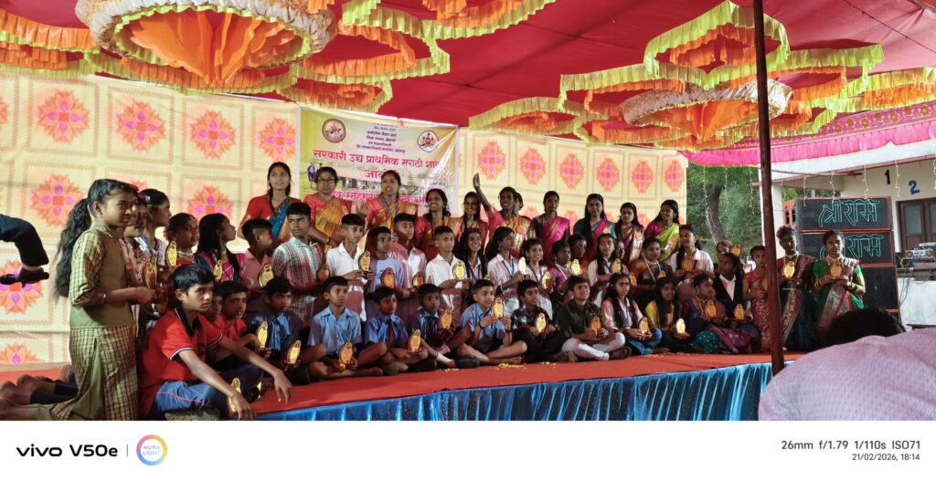 हिंदवी स्वराज्याचे दुसरे धनी स्वराज्य रक्षक छत्रपती संभाजी महाराजांवर  ‘छावा’  या प्रसिद्ध इतिहासकार शिवाजी सावंत यांच्या  कादंबरीवर आधारित मागच्या वर्षी प्रसिद्ध झालेल्या ‘छावा’ चित्रपटाचे विद्यार्थांनी कार्यक्रमाच्या शेवटी जशास तसे सादरीकरण केले. यावर छत्रपती शिवाजी महाराज आणि स्वराज्य रक्षक छत्रपती संभाजी महारांच्याच्या घोषणेने परिसर दणाणून गेला होता. यावरून माय मराठी शाळेत देश संस्कृतीचे जतन कसे करावे याचे बाळकडू मराठी शाळेतच पाजले जाते हेच यावरून सिद्ध होते. संगमेश्वर येथील देसाई वाड्यात सर्व हिंदवी स्वराज्याच्या राजांची बैठक घेण्यासाठी थांबलेल्या छत्रपती शिवाजी महाराजांच्याबाबतीत औरंगजेबला भेटलेल्या काही दगाबाज हिंदवी स्वराज्यातील सुभेदार तेही खुद्द महाराजांच्या मेहुण्यांकडूनच दगाफटका झाला अन् त्यावेळी महाराज कैद झाले. त्यानंतर त्यांच्यावर सलग चाळीस दिवस झालेल्या अन्याय अत्याचारांचे यावेळी उत्तमरित्या सादरीकरण करण्यात आले. याला मुख्याध्यापक सर्व सहशिक्षक, शाळा सुधारणा कमिटी, नृत्य आणि नाटकासाठी परिश्रम घेतलेल्या सर्वांचेच मोलाचे सहकार्य लाभले.
