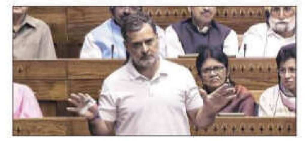 लोकसभेतील विरोधी पक्षनेते राहुल गांधी यांनी बोलतांना पंतप्रधान नरेंद्र मोदी यांनी ऑपरेशन सिंदूर, बालाकोट आणि नोटाबंदीचे जादुगार  असा टोला लगावला. यावर  सत्ताधाऱ्यांमध्ये संतापाची लाट उसळली होती, संसदीय कामकाजमंत्री किरण रिजिजू यांनी राहुल गांधींवर देशाच्या लष्कराच्या सशस्त्र मोहिमांचा अपमान केल्याचा आरोप केला. पुढे बोलतांना राहुल गांधी म्हणाले, महिला आरक्षणाआडून भाजप राजकीय खेळी खेळत आहे, यामध्ये महिलांचा मुद्दा कुठेही त्यांच्या केंद्रस्थानी नाही असाही टोला त्यांनी लगावला. यावर सत्ताधारी आणि विरोधकांमध्ये जोरदार गोंधळ उडाला.