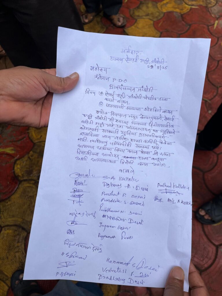 जांबोटी राजवाडा येथील आम्हीं रहिवाशी असून, आमची गल्ली ही वतंनदारांची असून गावच्या सुधारणेत या गल्लीचे योगदान आहे. मात्र, आतापर्यंत सरकारी सोयी- सुविधांपासून अद्याप वंचितच राहिली आहे. आमच्या गल्लीतील रस्ता करावा, पाणी समस्या सोडवावी, शिवाय इतरही नागरी समस्या दीपावळीच्याआधी सोडवण्यात याव्यात अशी जोरदार मागणी सदर निवेदनात करण्यात आली आहे. यावेळी जिल्हा पंचायत सदस्य जयराम देसाई यांच्या उपस्थितीत सदर निवेदन देण्यात आले, यावेळी सुरेश कळेकर, प्रशांत देसाई, राजकुमार देसाई, पुंडलिक देसाई, परशुराम देसाई, महादेव देसाई, रघुनाथ देसाई, हणमंत देसाई, वेंकटेश देसाई, विठ्ठल ना. देसाई, अनिल कळेकर, प्रल्हाद कळेकर आदी उपस्थित होते.